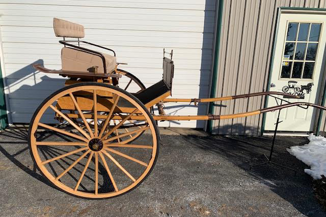 #2016 - Mini Meadowbrook Cart - available with wood wheels (shown) or wire spoked wheels. Your choice of seat fabric and color: