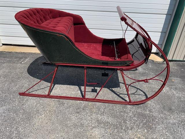 #2025 - Single-Seat Sleigh - New, painted red with green velveteen seats. Wheels available.